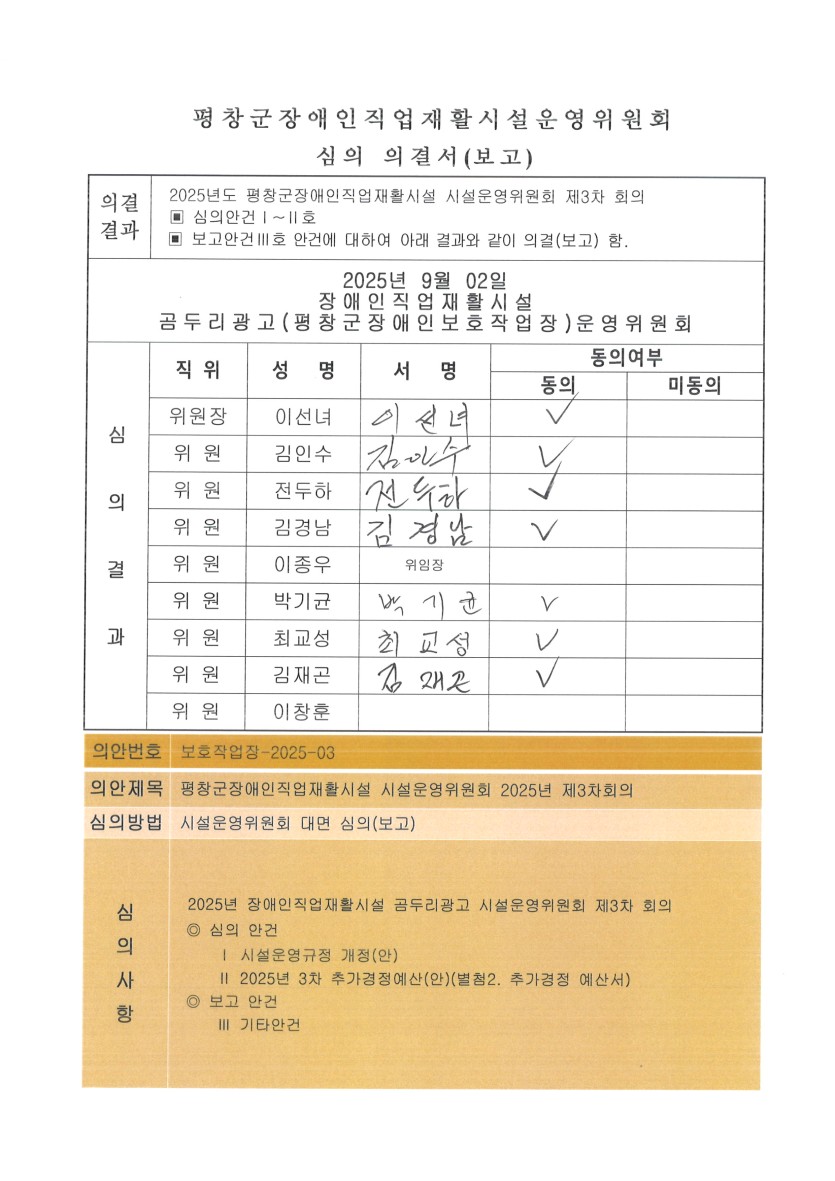 2025년 곰두리광고 시설운여위원회 3차회의 결과 공고 페이지 정보 작성자 관리자 댓글 0건 조회 402회 작성일 25-09-08 16:12 본문 2025년 곰두리광고 시설운여위원회 3차회의 결과 공고일시 :2025.09.02 첨부파일 4. 회의자료.pdf (2.4M) 18회 다운로드 | DATE : 2025-09-08 16:12:24 목록 이전글2025년 인사위원회 개최 결과 안내 25.09.22 다음글2025년 시설운영위원회 3차 회의 개최 25.09.01 댓글목록 댓글목록 등록된 댓글이 없습니다.